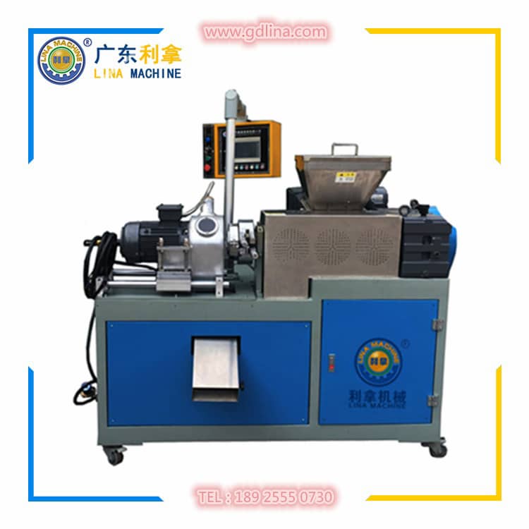3、改性造粒機(jī):為造粒主機(jī),其功能是將密煉機(jī)混煉好以后的膠料經(jīng)過二次分散推送至切粒模頭切粒,因在推送過程中需要保證膠料的溫度所以一般設(shè)有五個溫度控制區(qū),用以調(diào)節(jié)膠料溫度配合切粒機(jī)切粒成型;